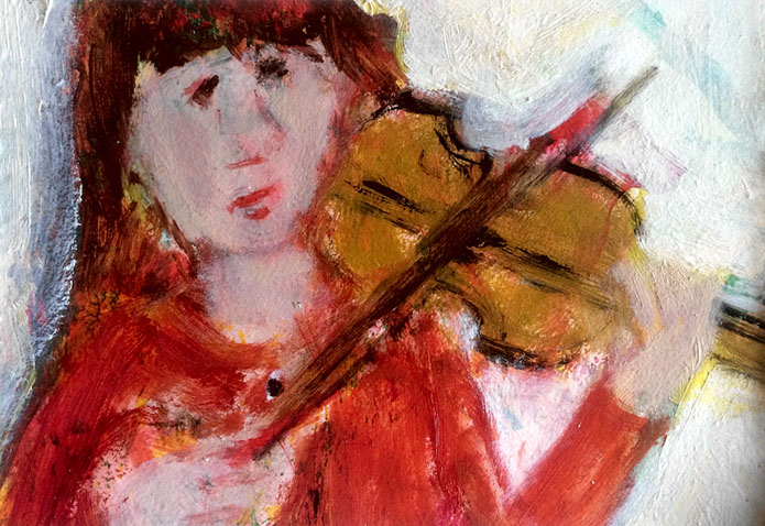 Into the music (2017), olieverf op geprepareerd karton, 30/24 cm. TE KOOP € 50