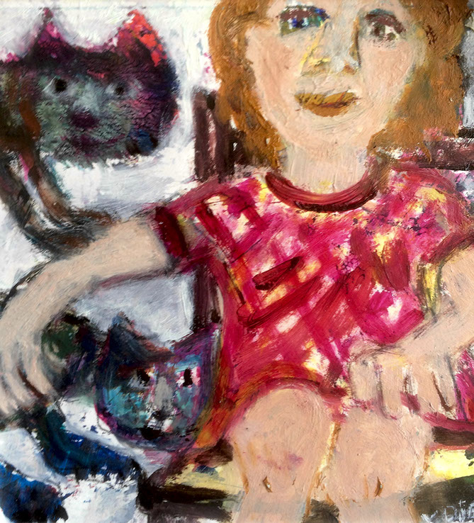 My cats (2017), olieverf op geprepareerd karton, 24/24 cm. TE KOOP € 40