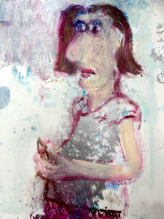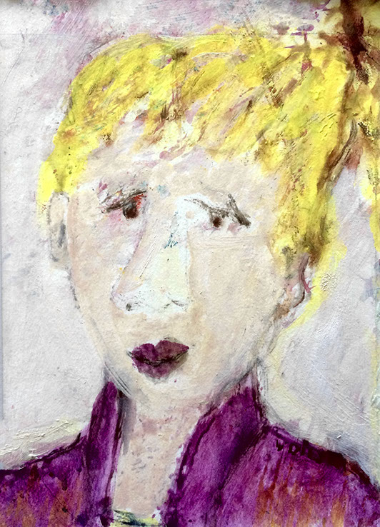 Fair-haired girl (2017), olieverf op geprepareerd karton, 30/24 cm. TE KOOP € 50
