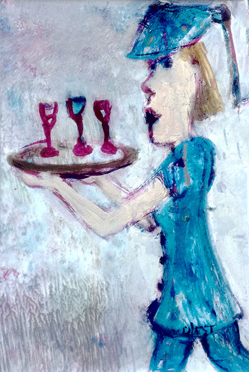 Can I serve you? (2017), olieverf op geprepareerd karton, 30/24 cm. TE KOOP € 50