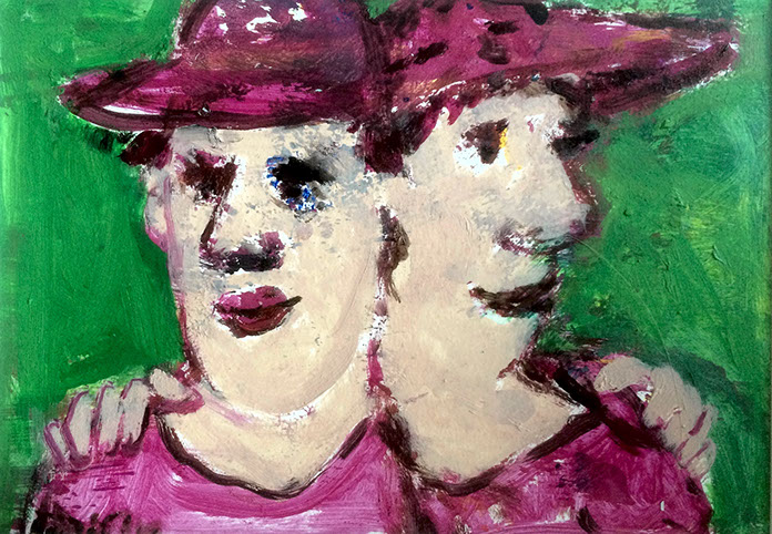 Twins (2017), olieverf op geprepareerd karton, 30/24 cm. TE KOOP € 50