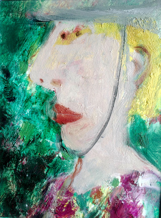 Lady in green (2017), olieverf op geprepareerd karton, 24/18 cm. TE KOOP € 40