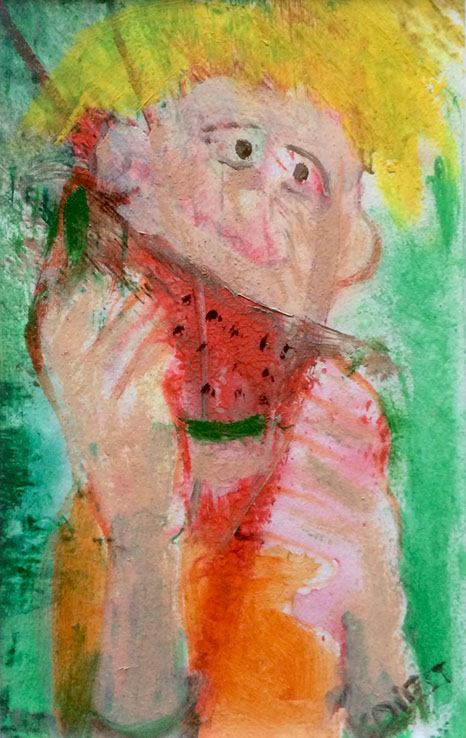Yummy (2017), olieverf op geprepareerd karton, 24/18 cm. TE KOOP € 40