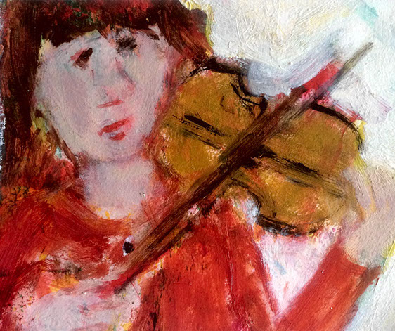 Into the music (2017), olieverf op geprepareerd karton, 30/24 cm. TE KOOP € 50